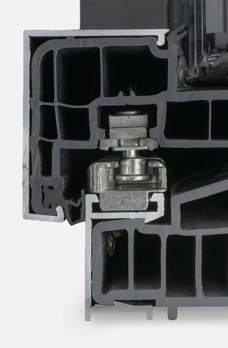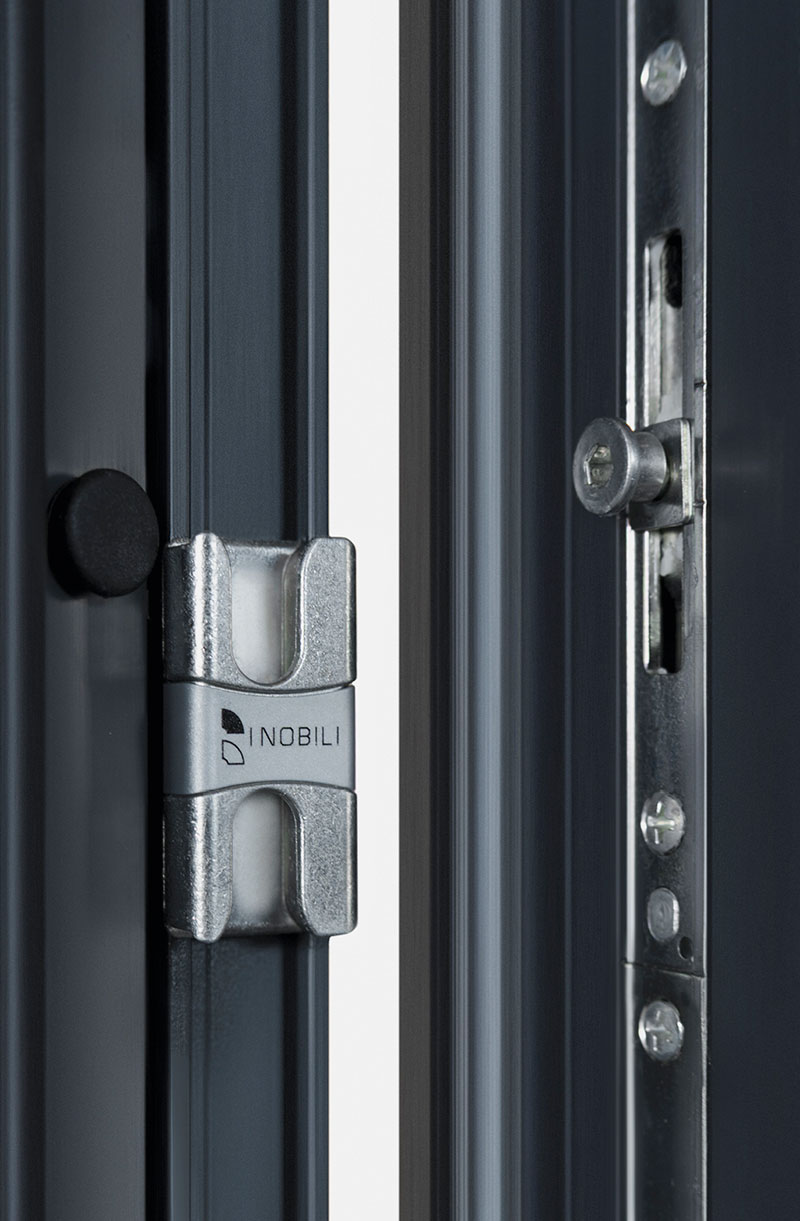 Standard doppio vetro di sicurezza. Marchese Hybrid ha standard più punti di chiusura perimetrali, con nottolini a fungo e incontro di sicurezza base.